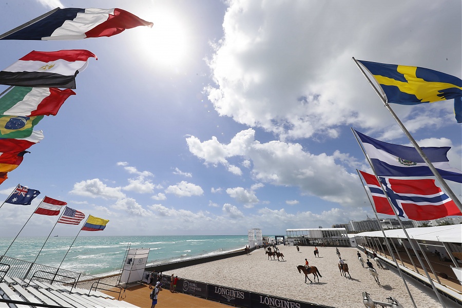 Bildetekst: Andre runde av Global Champions League er i gang i vannkanten på Miami Beach. (Foto: Stefano Grasso/LGCT)