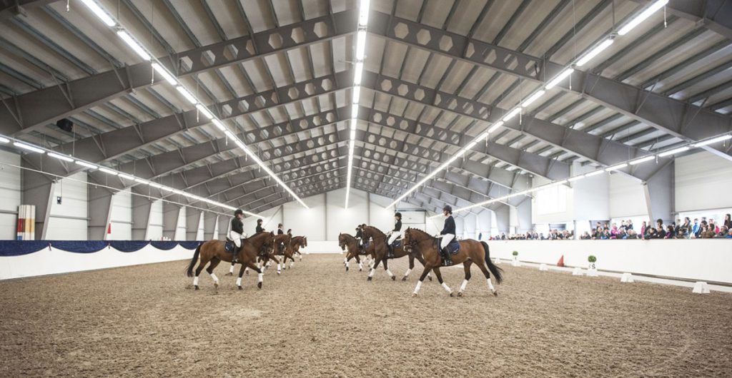 Et flott stort kunstverk med tittelen «Band of horses» av Sølvi Waterloo Normannsen og Hans Arne Vedlog ble avduket inne i spisesalen før hesteoppvisningen begynte. Deretter entrer dølahestene Furu Svarten og Olstad Blesen med kusk Øystein Bakken ridehallen. De som har bidratt til at ridehuset ble reist klippet snor, før en feiende flott kvadrilje ble vist fram av ridelærerstudentene og hestene som vi bruker i utdanningen. Travtrenerstudentene viste fram kaldblods-og varmblodstravere både for sulky og i monté før representanter for de tre nasjonale hesterasene vise sin allsidighet. Dølahesten Liagubben/Elisabeth Nøkleby viste dressur, nordlandshesten/lyngshesten Bjørke Burre/Jenny Gulbrandsen viste maratonkjøring mens fjordhestene Veslelisa og Nybråtens Skumring/ Espen Mørch Andersen viste seg fram i stasvogn og bunad.