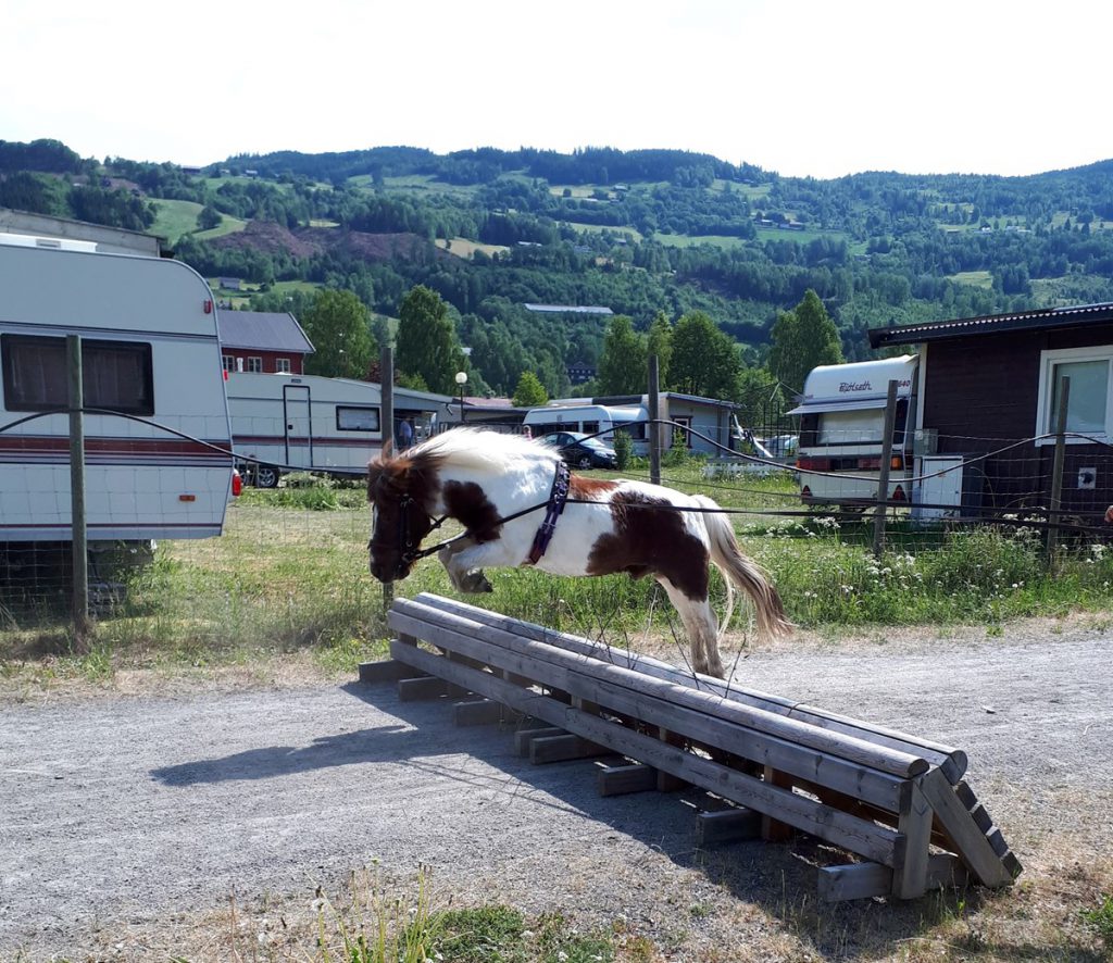 -Jeg har jo sett andre longere hest over hinder, og jeg har gjort det selv med hester som har vært usikre på enkelte hinder. Dermed fant vi ut at det kunne fungere å tømmekjøre. Det krever jo sitt av den som tømmekjører, man må ha en viss ferdighet på plass og kunnskap om hest og tømmekjøring – det er jo viktig at man ikke henger igjen i tømmene og at man sørger for at det hele går sikkert for seg for begge parter. Vi prøvde det ut – og det gikk utrolig bra. Ponniene elsket det, og det gjorde jammen de tobente også! Det handler bare om å tilpasse treningen, tenke sikkerhet – og vips, så har man en trening som er sunn og god både for to- og firbente!