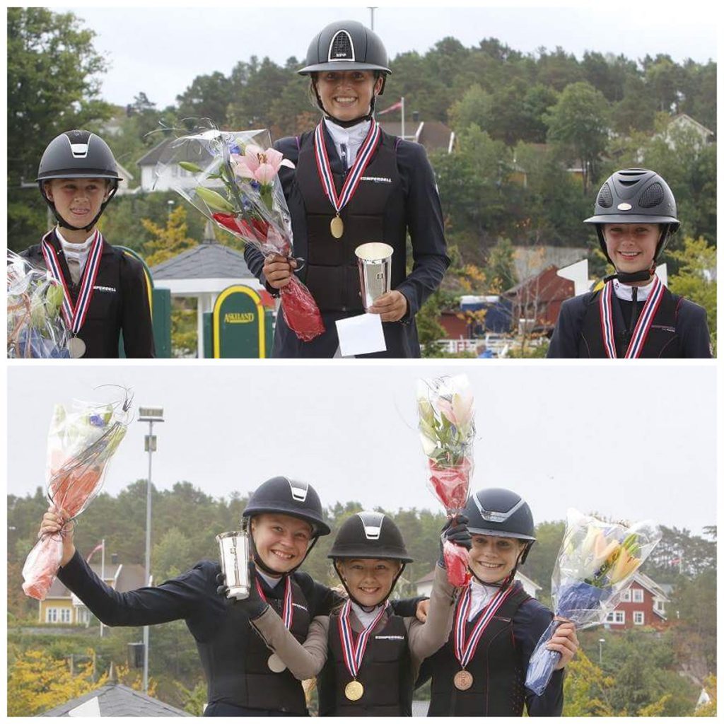 Medaljesugne ekvipasjer møttes deretter til dyst i NM-finalen for ponni kategori 1, og her var virkelig temperaturen høy til siste slutt denne lørdagen. Madeliene Lien og Javas Alun fra Drammen og Omegn Rideklubb og Vilde Kristine Nålby Thomassen og Tynagh Lady fra Drøbak Rideklubb måtte nemlig ut i omhopping på åtte feil i kampen og årets gull og sølv. Til sist holdt førstnevnte ekvipasje alle bommer oppe når det gjaldt som mest, og kunne dermed slippe jubelen løs som norgesmester. Sistnevnte kunne glede seg over et strålende sølv – etter en forrykende firefeilsrunde og klart beste omhoppingstid. Bronsen blant enerne gikk populært nok dette året til Arendal og Grimstad Rideklubbs egen Victoria Celine Dalen og Kadans van Orchild’s.