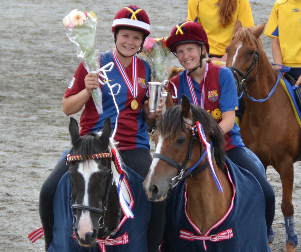 Bildetekst: Årets juniormestere i Mounted Games par, Hedda Stadheim på Nuggie og Mari Næss på Lotte. Foto. Privat