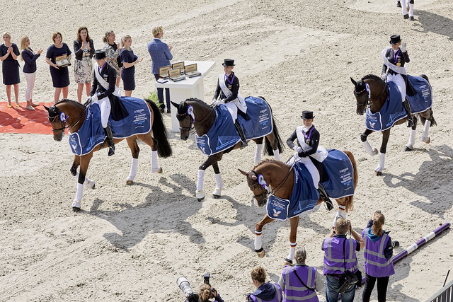 Tyskland sikret seg gullet med god margin, laget som bestod av Jessica von Bredow-Werndl/TSF Dalera BB, Dorothee Schneider/Showtime, Sönke Rothenberger/Cosmo og Isabell Werth/Bella Rose, fikk totalt 244,969 poeng – Isabell spikret gullet med sine 85,652 %.