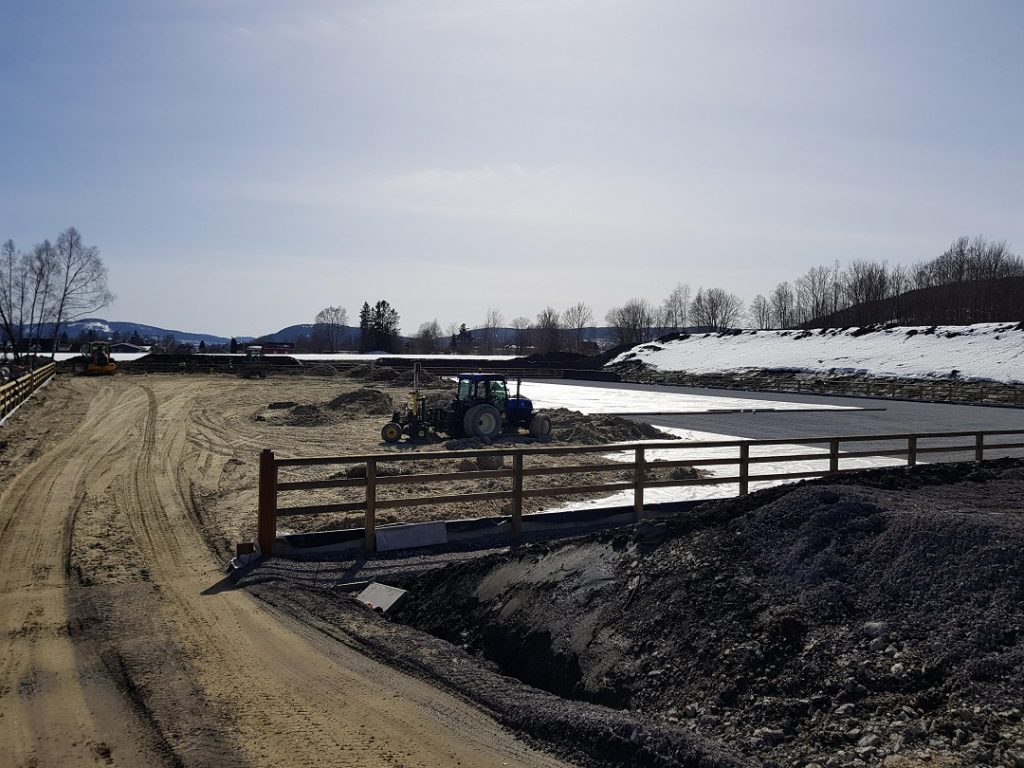 En helt ny ridebane på 62 x 85m, med internasjonal standard og en ny oppvarmingsbane på 25 x 62m, er på plass. I begynnelsen av denne uka ble toppdekket på banene lagt. Et nytt funksjonærbygg for dommere og sekretariat, samt et nytt lager for hindermateriale og utstyr blir også etablert. Områdene rundt de nye ridebanene vil i løpet av våren bli opparbeidet og ferdigstilt som grønne arealer. Videre skal det utredes muligheter for å bygge et nytt klubbhus/serviceanlegg med kafeteria, restaurant, dommer og funksjonærfasiliteter.