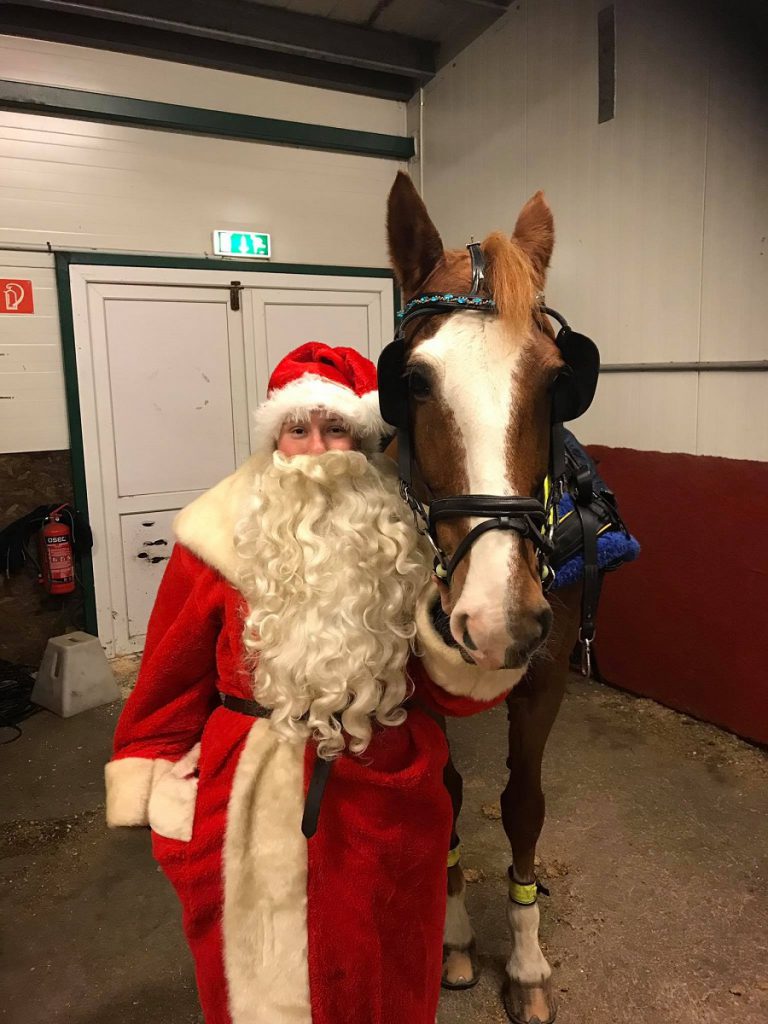 Det er en fast juletradisjon at hester og kusker fra Alna Ridesenter, med Lene Kragh i spissen, sprer julestemning og glede rundt omkring i Oslo by. – Alle kjørehestene våre var på forskjellige steder i byen på mange oppdrag i helgen. Lene spurte om jeg kunne ta oppdraget på Lutvann med Saturn, og det regnet jeg med skulle gå bra, forteller Wenche. Ridesenterets Ine Nyhus fikk det høytidelige oppdraget som nisse, mens Wenche som profesjonell kusk sørget for at både nisse og gaver kom trygt frem.