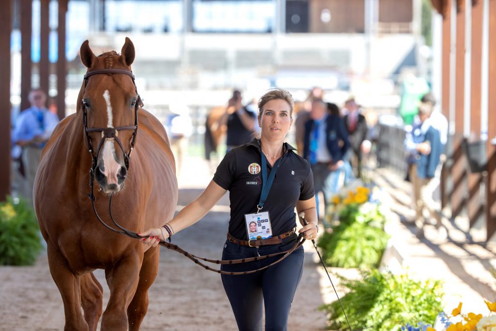 Nå er mesterskapet i gang for Marit Haarr Skollerud og Dublin Van Overis. I går kveld var det vetsjekk for alle spranghestene. – Det gikk problemfritt, rapporterer landslagsleder Mikael Kolind.