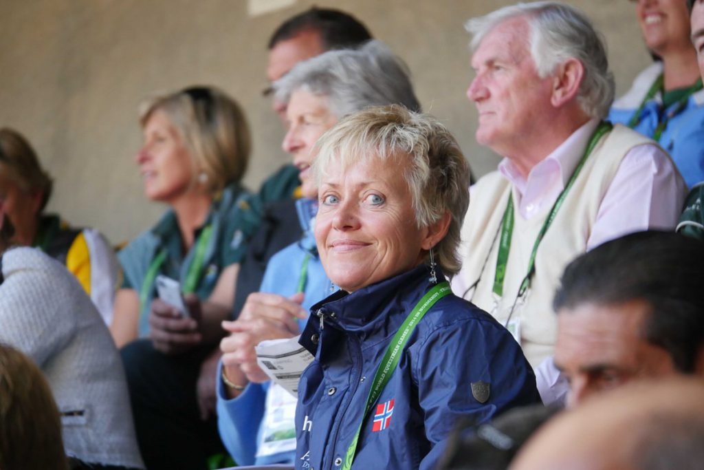 Vi møter henne rett før den første norske rytteren skal i ringen og det er en tydelig engasjert forbundssekretær som har benket seg til på arenaen.