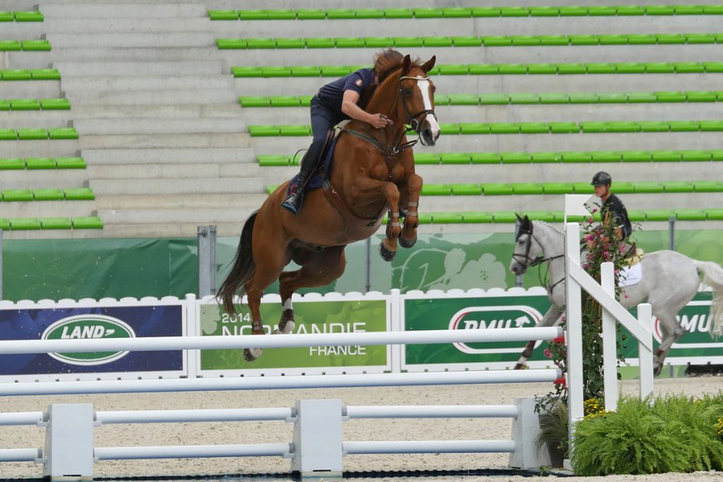 Ved dagens warm-up for sprangdeltagerne i Normandie syntes flere av hestene, også de norske, at vanngraven var skummel.